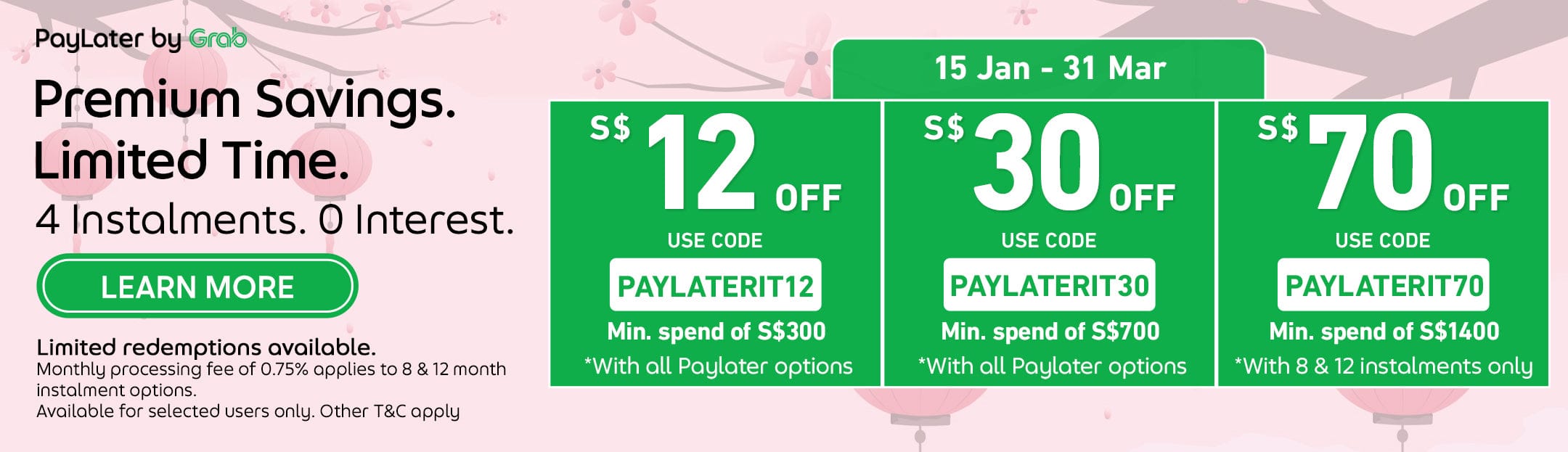 Save up to $380 + extra up to $70 off with PayLater by Grab!